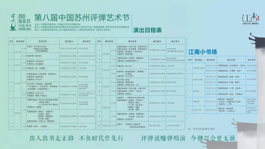 作为全国范围内规模最大、艺术水准最高、参与面最广的评弹艺术活动,第八届中国苏州评弹艺术节将于10月16日至10月24日在苏州举办。