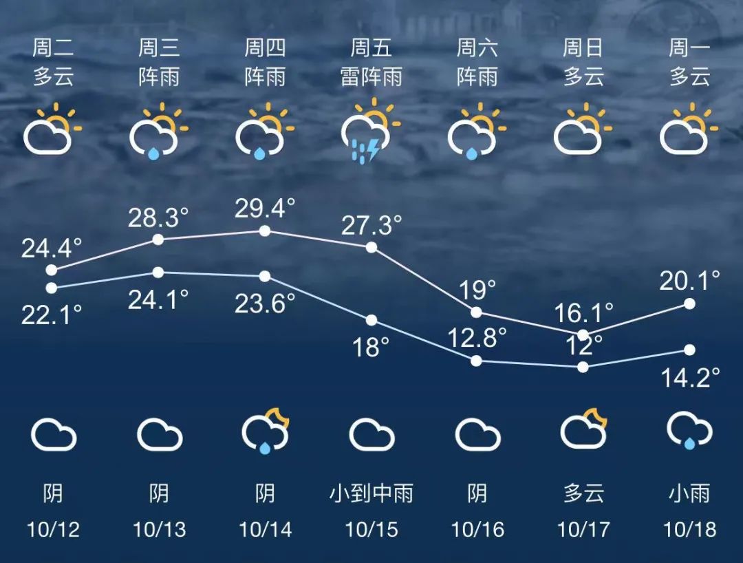苏州市气象台预报,受冷空气影响,预计本周气温较上周明显回落。此外,15日起又有一股冷空气将影响苏城,也就是说,本周14日前气温小幅波动,15日起气温又会逐步下降,预计周最低气温12℃左右,出现在18日。