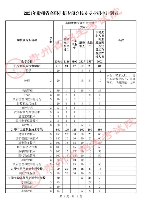 原标题:《速看!2021年贵州省高职扩招专项分校分专业招生计划表来了》