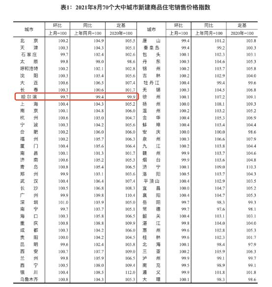 国家统计局城市司首席统计师绳国庆,在解读2021年8月份商品住宅销售价格变动情况时表示,2021年8月份,各地全面落实房地产长效机制,持续加强房地产市场调控,70个大中城市商品住宅销售价格环比、同比涨幅总体延续回落态势。