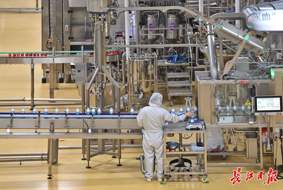 在蒙牛高科乳制品武汉有限公司的车间内,透过参观走廊的透明玻璃可以看到,自动化生产线如盘山公路般蜿蜒曲折。从牧场运送而来的原奶经过预处理、灌装、包装三大工序,以及自动化检测后,一杯鲜活的酸奶就加工完成。