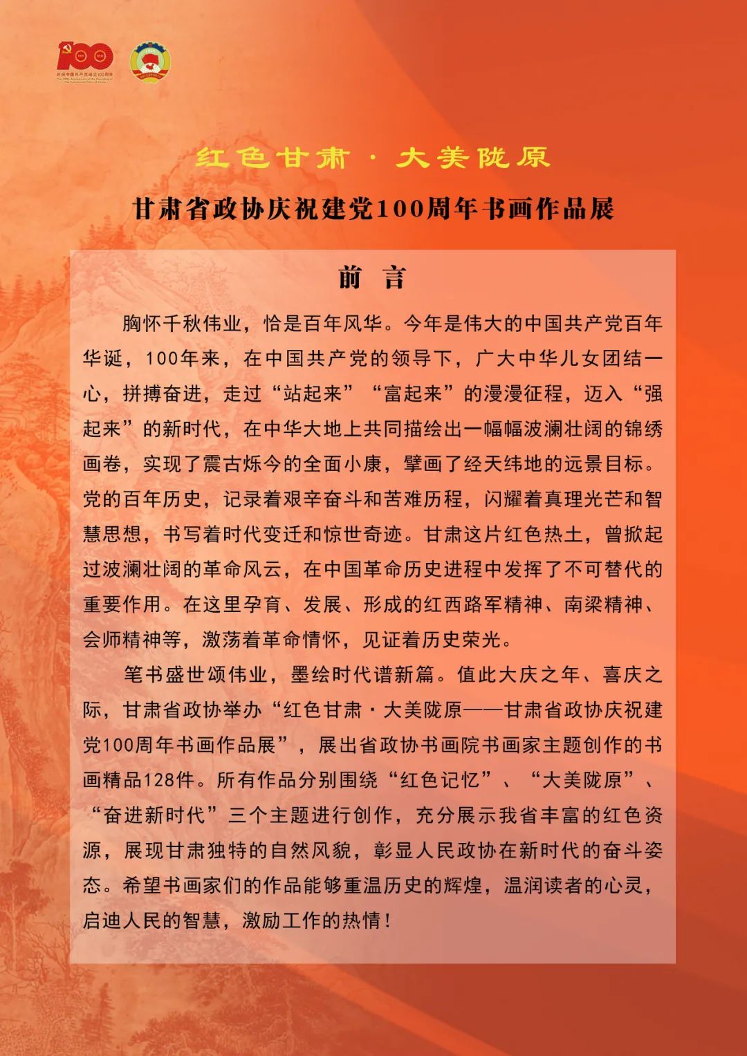 原标题:《“红色甘肃 大美陇原”甘肃省政协庆祝建党100周年书画作品展(二)》