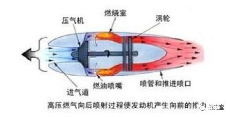 其工作原理并不复杂,先从前端吸入大量空气,在燃烧室与燃料充分混合燃烧,然后高速喷射出去,获得巨大的推力,但同时也有油耗大,可靠性不佳的缺点。