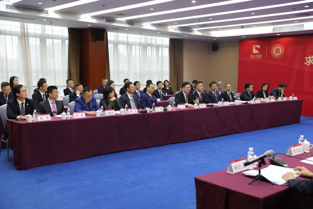 钱旭红对紫江集团一直以来给予学校的大力支持表示感谢,他指出,素有优良学术传统和深厚学术基础的华东师大,致力于跨学科,集研究、资政和培训于一体的高端学术平台和智库建设,开展具有重大学术价值的原创性研究,为国家和上海市政府提供各种问政、参谋和咨询服务,为“四史”教学、人才培养以及社会教育提供优质资源,为促进党史研究、传承红色基因、坚定道路自信作出更大贡献,在成果产出、培养人才和国际学术舞台发声上做出更多成就。