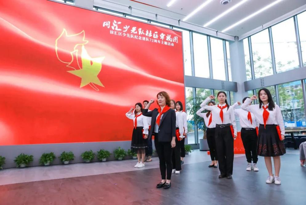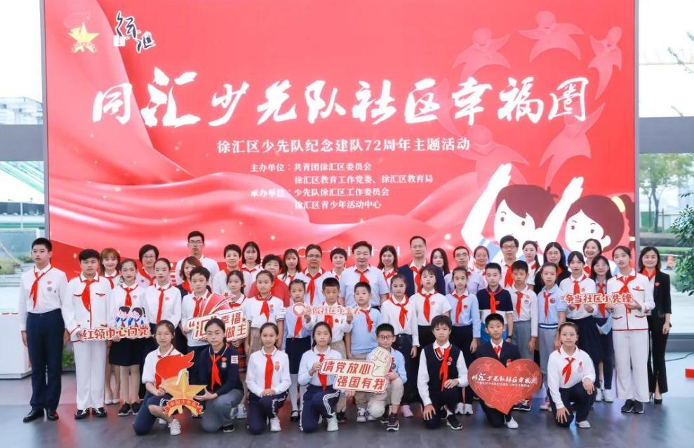 10月11日下午,同“汇”少先队社区幸福圈——徐汇区少先队纪念建队72周年主题活动在徐汇滨江党群服务中心举行。市少工委主任、市少先队总辅导员赵国强,区人大常委会副主任徐国文,副区长方雷,区政协副主席周秀芬出席,区学校少工委主任代表、社区少工委主任代表、大队辅导员代表、校外辅导员代表和少先队员代表参与活动。
