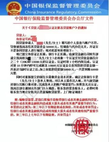 接着勇哥填写了个人银行卡信息,准备提现时,系统提示其上传的银行卡号错误导致银行账户被冻结,需要支付10000元保证金解冻,否则就是“骗取贷款罪”。随后“工作人员”将一个要求缴纳保证金的红头文件发给了勇哥,落款为“中国银行保险监督管理委员会”。