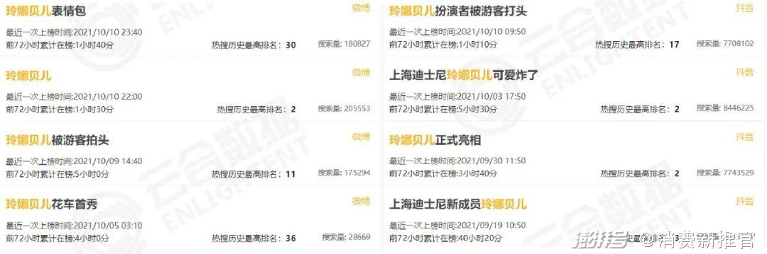 微博上,截至10月13日,仅#玲娜贝儿#与#川沙妲己#两个微博话题词阅读量超4亿,抖音同名话题词播放量超1.7亿,且该IP多次登上各平台热搜。