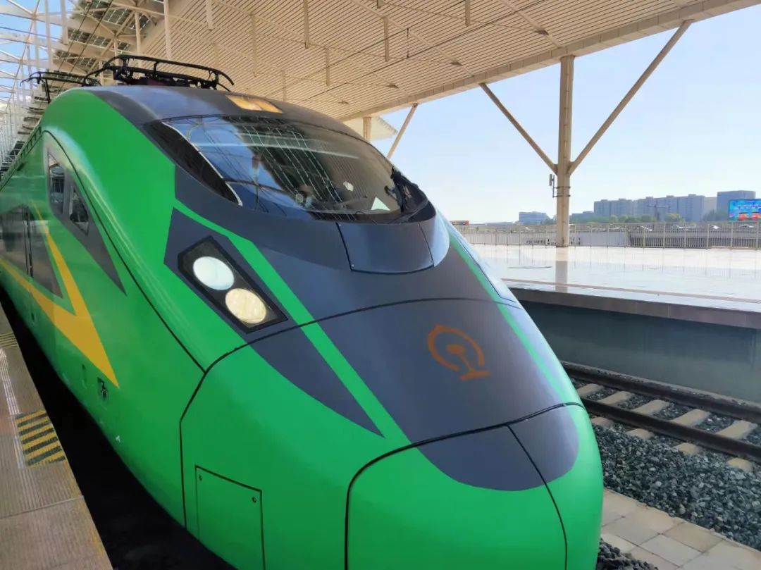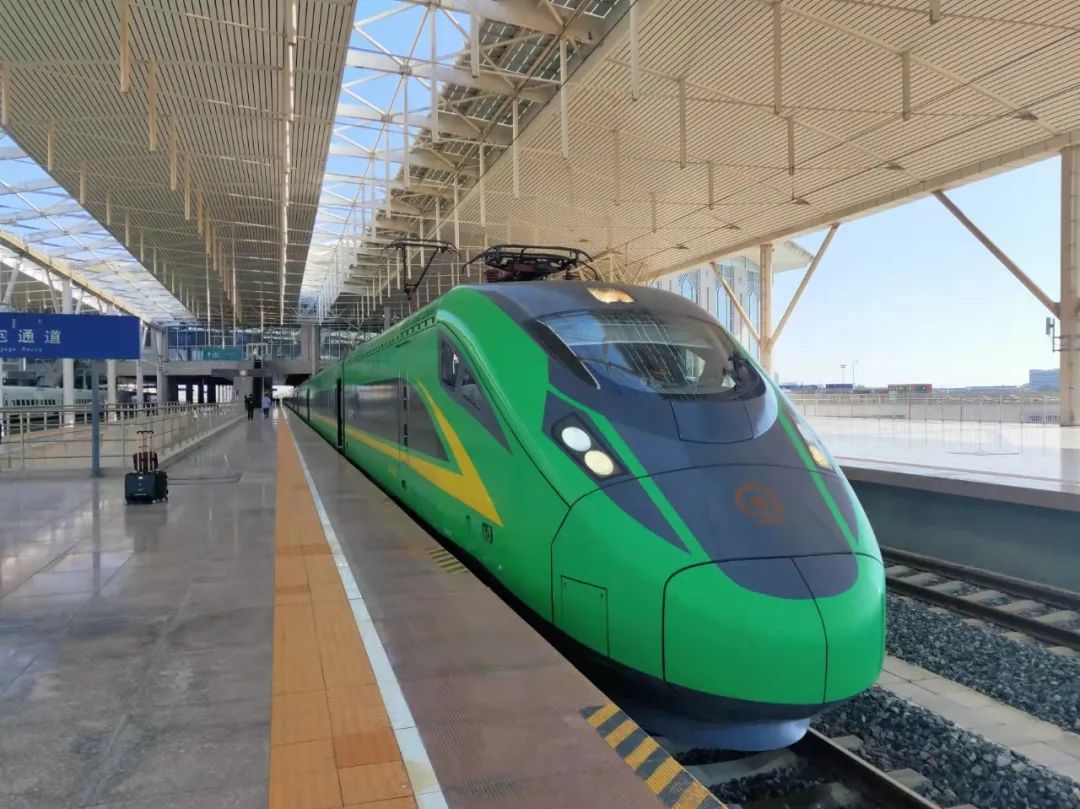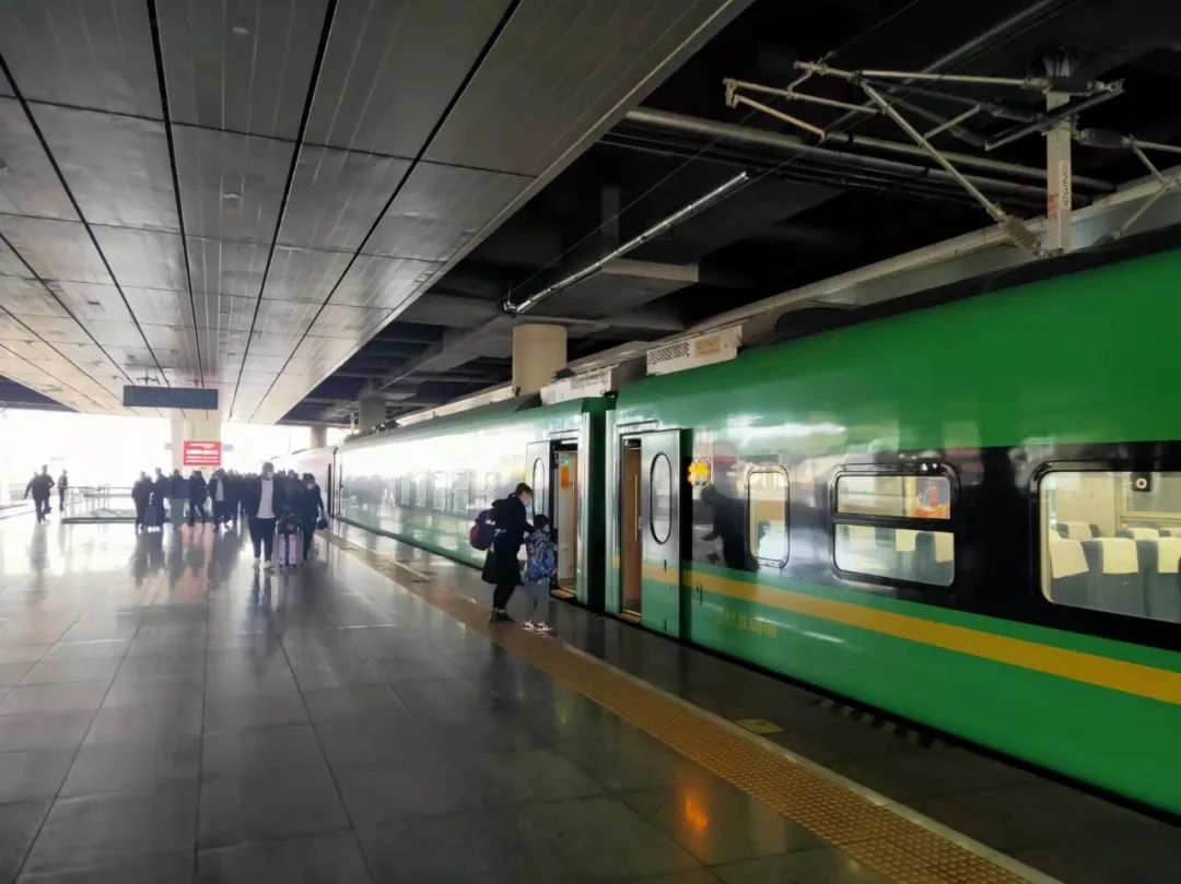 担当此次任务的是时速160公里的动力集中复兴号动车组列车,由于它外观采用了颜色鲜亮的“国槐绿”为底色,因此大家都形象的称它为“绿巨人”。“绿巨人”与现有空调车相比,各种服务设施参照复兴号高速动车组的标准进行设计,设备设施功能更齐全,乘坐环境更加舒适、便捷,大幅度提升广大旅客的出行体验。