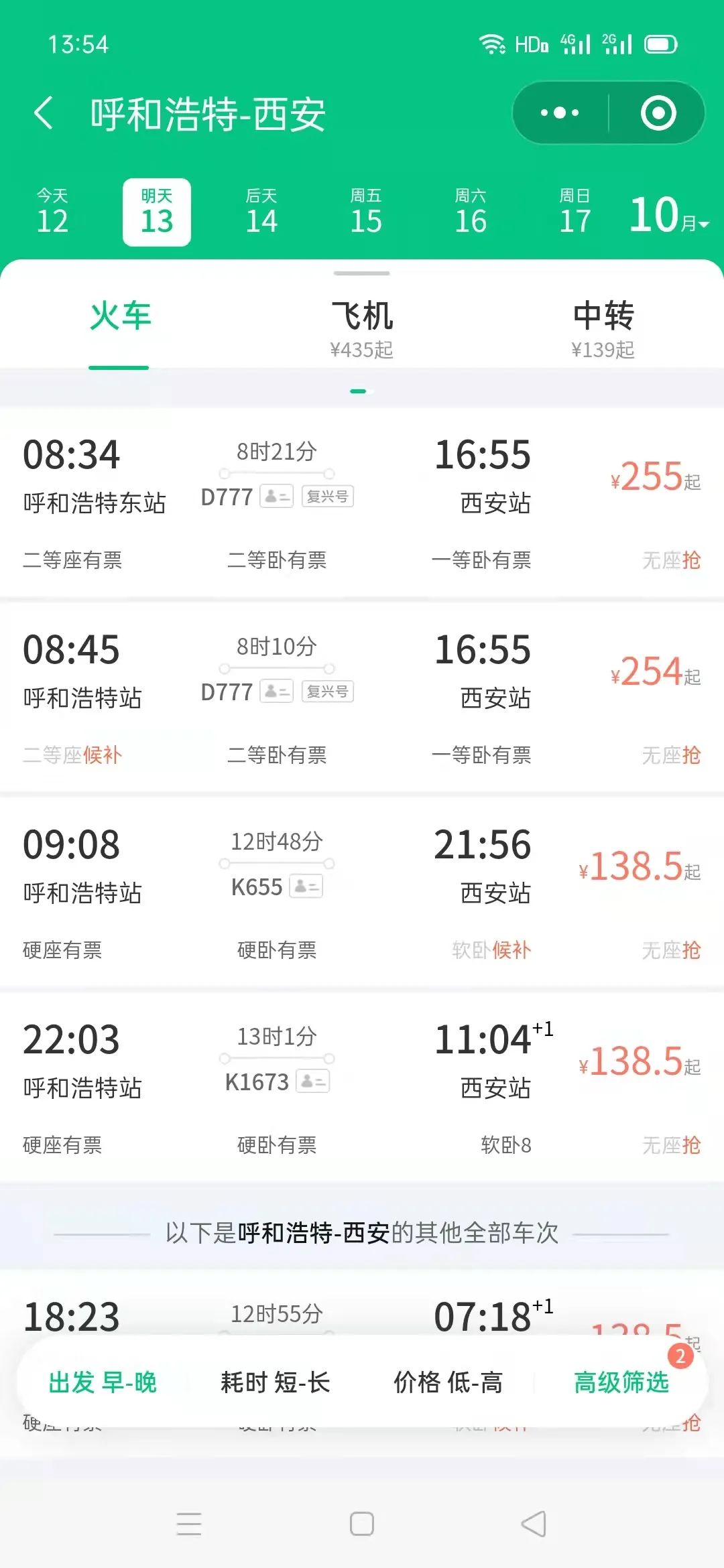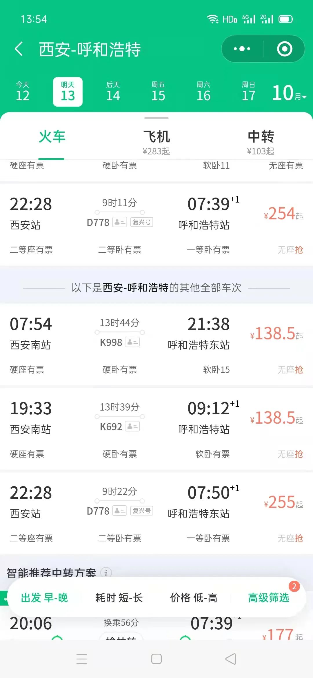 这趟车途经呼和浩特东、呼和浩特、托克托东、准格尔、东胜东、鄂尔多斯、榆林、延安、西安9个站,全程运行1016公里。用时8小时21分钟,比普通列车旅行时间缩短4小时26分钟。