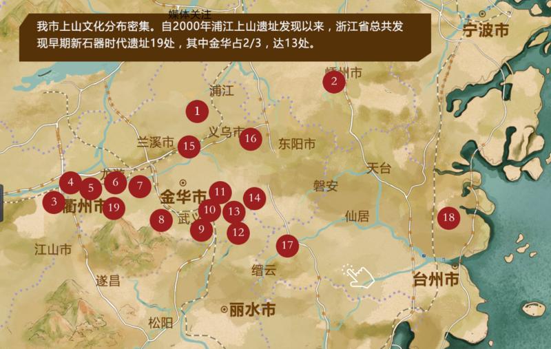我市上山文化分布密集,除了磐安,万年上山覆盖八婺大地。