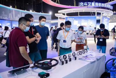9月16日,在湖南国际会展中心,观众在参观北斗卫星导航系统应用成果展。记者 陈思汗 摄