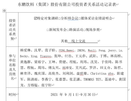 此外,机构还关心东鹏经销商是否与红牛经销商有重叠。公司表示,东鹏经销商是排他的。