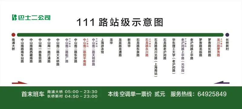 据了解,此次线网优化调整后,111路继续实行无人售票,首末班车时间分别为长桥新村4:50-23:00、南浦大桥5:00-23:30,配车数从12辆增加至17辆,南浦大桥高峰时段发车间隔较原先有所缩短。