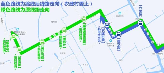 临时调整后走向:自松金公路金张公路始发,经松金公路→东贤路→漕廊公路→张旧路→松金公路→建农路至农建村委。