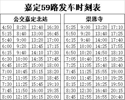 由于娄陆公路(兴庆路-北和公路)道路及桥梁改建工程已竣工,自2021年10月15日起,嘉定59路将恢复原走向、原站点以及原发车时刻表。恢复后发车时刻表如下↓
