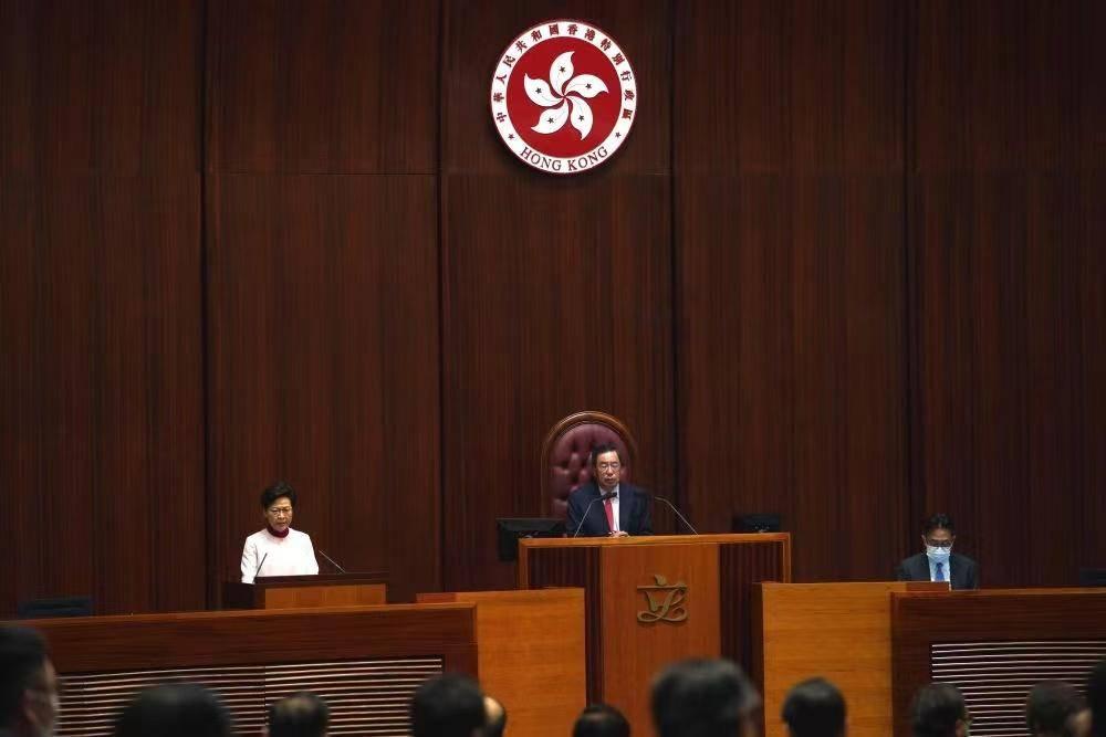 香港特区行政长官林郑月娥在特区立法会发表施政报告。