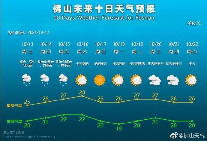 佛山市气象台预报,10月13日至14日有中到大雨和7到9级阵风,市民及相关部门要做好防台风准备。