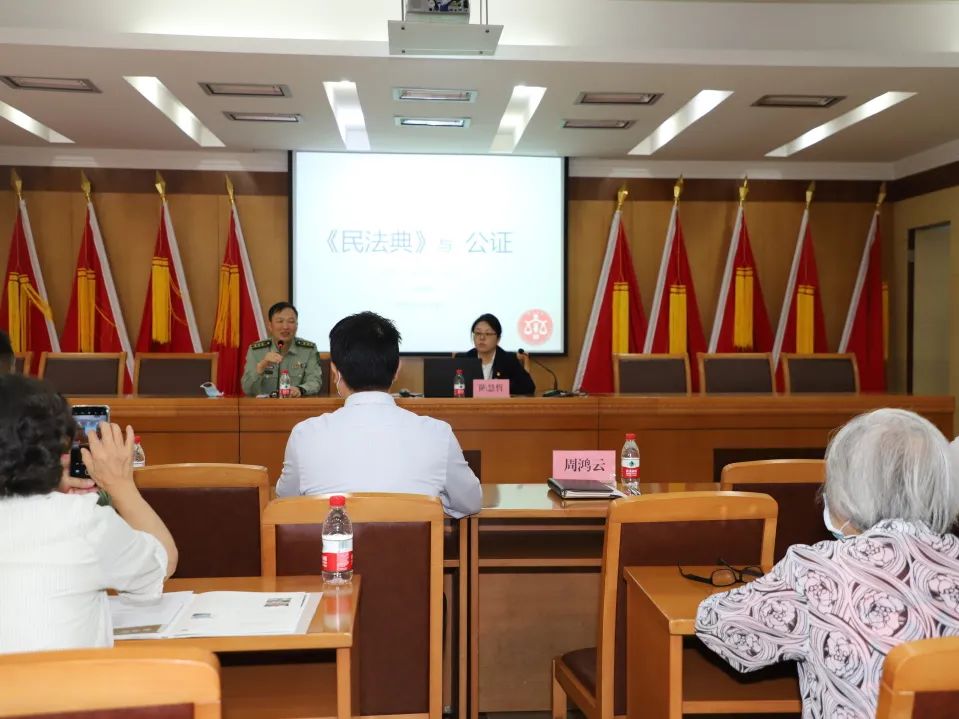 徐汇公证处家事部部长陈慧哲围绕离退休老干部们关注的遗嘱问题、继承问题、赠与合同公证问题,结合民法典的变化和自己的办证实践,以《民法典与公证》为题作了公证法律服务宣讲解读,受到了离退老干部们的热烈欢迎。