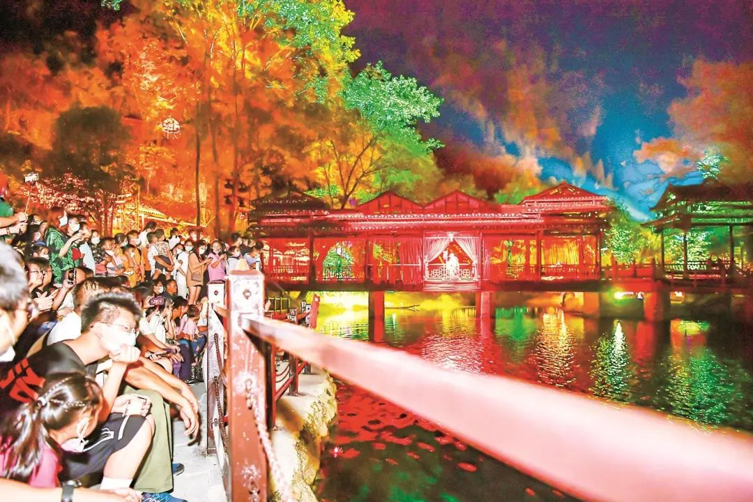 国庆黄金周期间,三峡车溪接待游客达4.5万余人次,再创游客接待量历史新高。10月2日16时,因夜游门票预约数量达到当日最大瞬时承载量的临界值,三峡车溪一度发布暂停售票的紧急通知,以保障游客安全和观演体验。