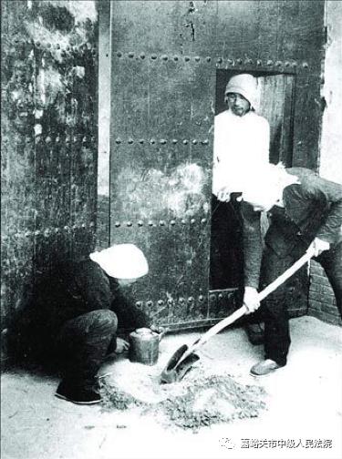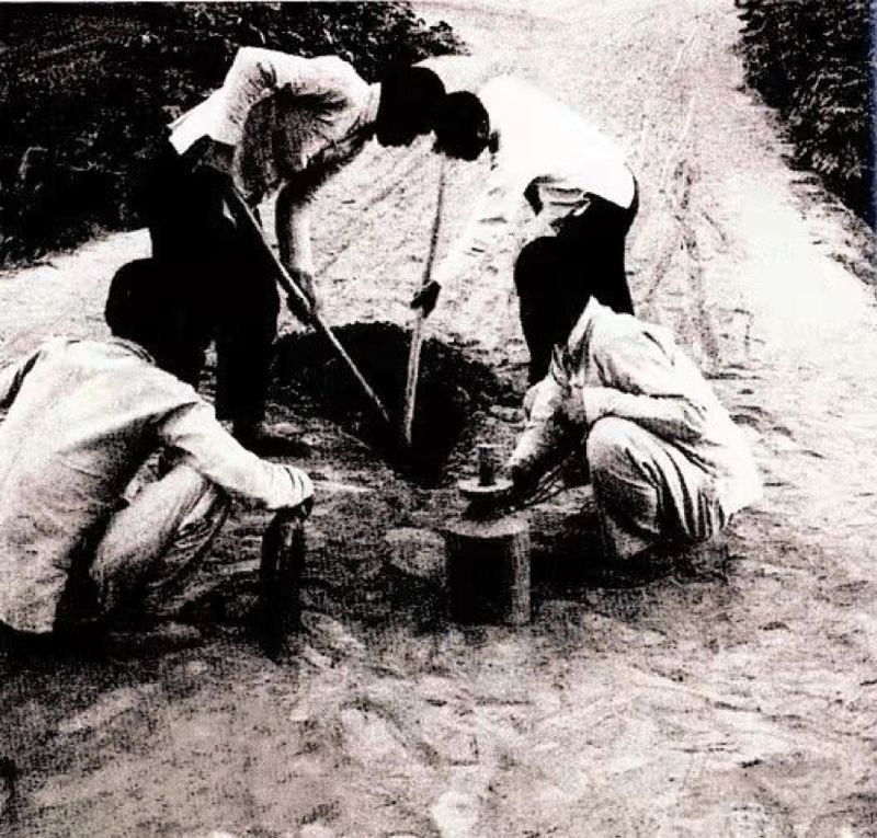 △地雷战真实照片,民兵在预埋地雷。