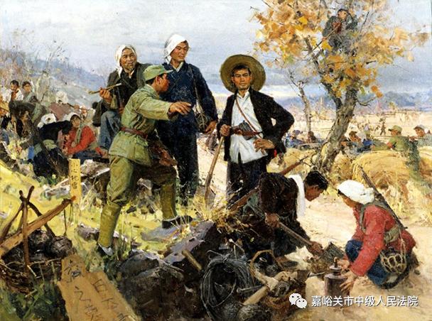 △油画《地雷战》