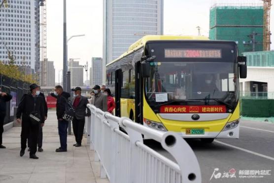 10月11日,乘客乘坐公交车到达终点站——乌鲁木齐站南广场。石榴云/新疆日报记者张万德摄