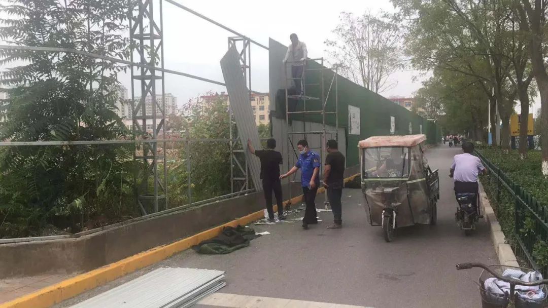 连日来,累计摸排辖区各类围挡27处,工农路菜市场北侧围挡和一金属项目围挡正在进行升级提升,其余完成拆除和提升整治。