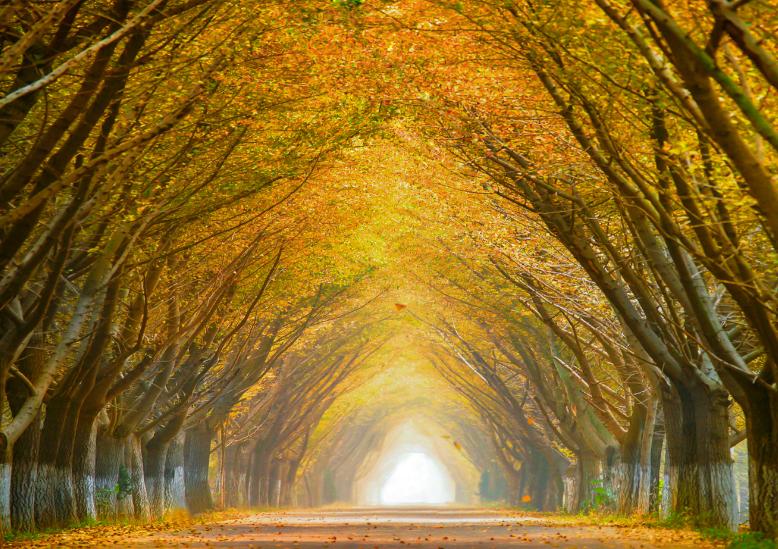 姚庄银杏时光隧道位于邳州市铁富镇万顷林海之中,长3.5公里。道路两旁银杏树木成荫、枝叶相交,形成一条四季独特的“时光隧道”景观。深秋枝叶繁茂,金黄灿烂。园内像这样的森林绿道共有50余条,总长150多公里,是放松身心的好去处。