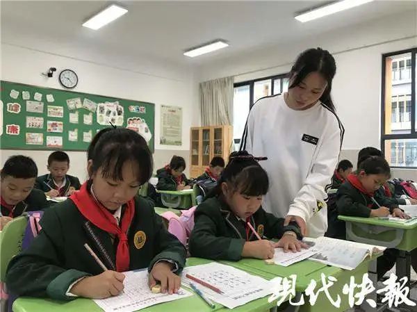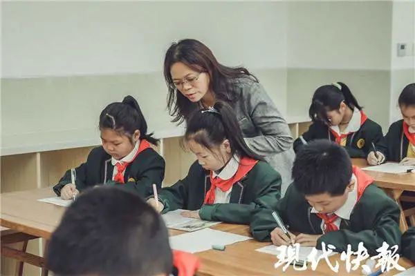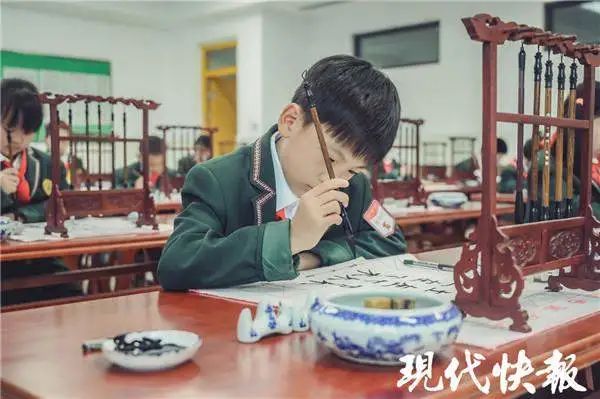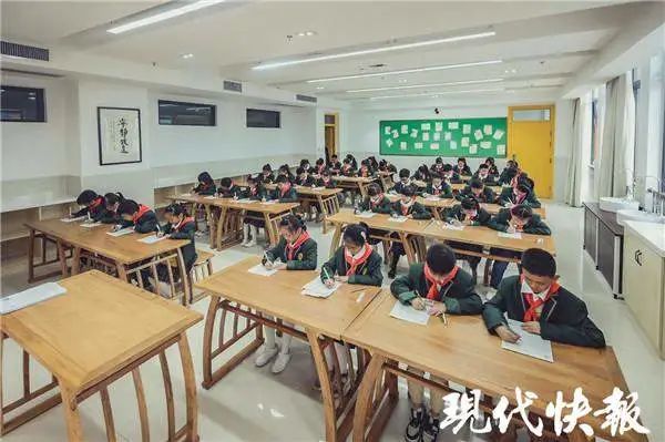 在书法教室里,该校书法社团的孩子认真端坐,一笔一画有模有样。" 我们没有专门在外面培训,只参加了学校的书法社团。" 三(1)班的程钰童和六(1)班的郑明希都在书法社团里练过字," 把平时作业也当成练字,坚持下来,字就能越写越好。"