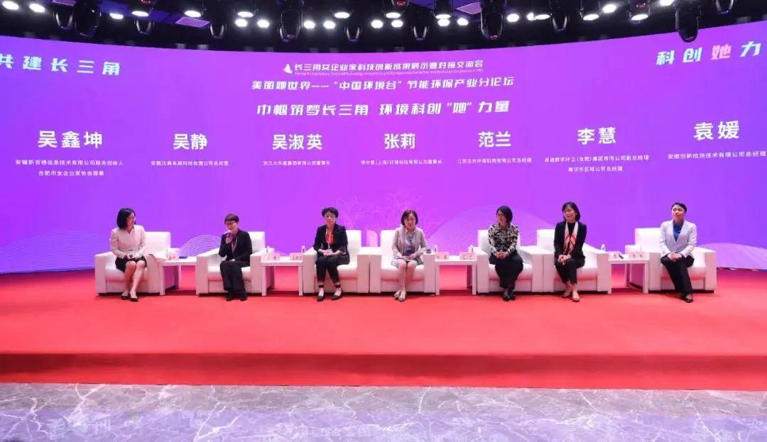 在美丽她世界——“中国环境谷”节能环保产业分论坛上,江苏兰丰环保科技有限公司总经理范兰等女企业家代表,围绕国内乃至长三角三省一市双碳新风向、企业层面如何落实双碳目标、绿色产业链企业实践创新的潜力如何挖掘等问题展开探讨。