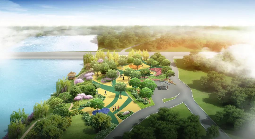 青银高速南虞河东岸大槐树处口袋公园效果图