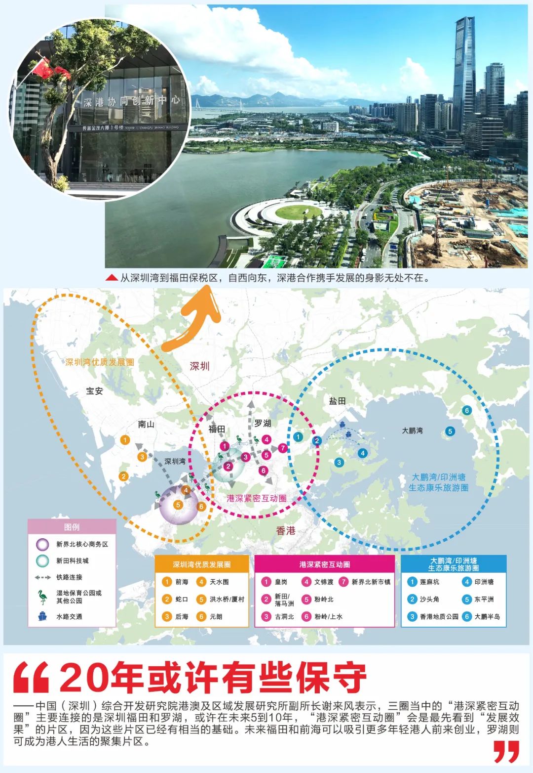 “香港北部都会区发展策略提出5项轨道交通系统规划,其中3条都是跨境通道,而福田和罗湖是深圳最有港味的地方,香港北部都会区的提出也会反过来刺激福田、罗湖等片区的发展,推动深圳城市发展格局的变化。”在谢来风看来,三圈当中的“港深紧密互动圈”主要连接的是深圳福田和罗湖,或许在未来5到10年,“港深紧密互动圈”会是最先看到“发展效果”的片区,因为这些片区已经有相当的基础。“未来福田和前海可以吸引更多年轻港人前来创业,罗湖则可以成为港人生活的聚集片区。”