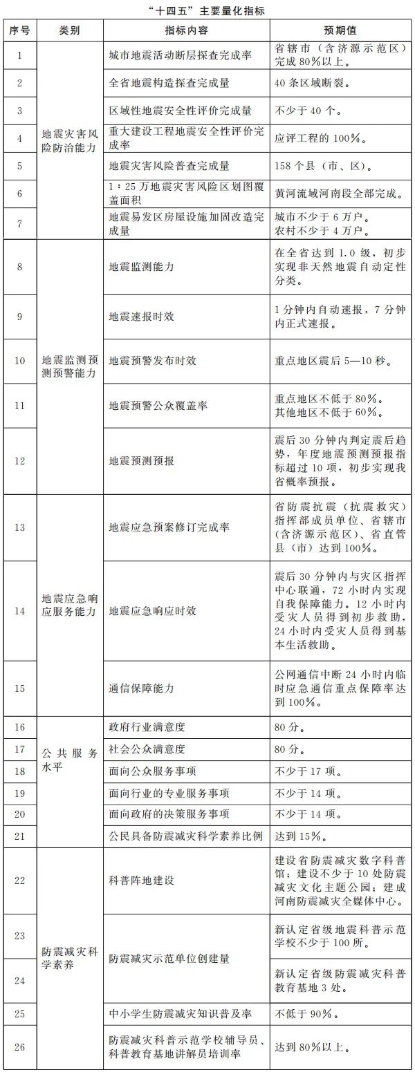 河南省“十四五”防震减灾规划