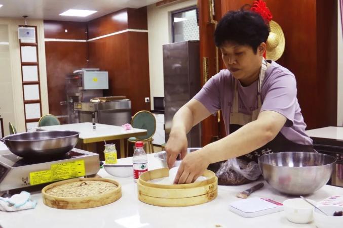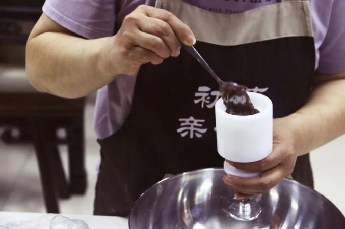 这款重阳糕的另一个创新点在于口味的丰富,辅料更为讲究。操作台上摆放着桂花、芋泥、豆沙、肉松、椰蓉五种馅料,王阿姨一边制作一边说:“外面买的馅料难免高油高糖,这些馅料是我们自己炒制的,不是很甜,里面还带有颗粒。”一口咬下去,奶香味混合着椰香味,太好吃了~