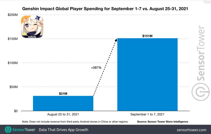 这就使得《原神》的成功显得尤为惊艳,在刚刚过去的9月份,《原神》成为全球最畅销的手游作品,其3.4亿美元的收入中有31%来自国内,21%来自美国,21%来自日本,国际化程度堪比腾讯的Supercell。