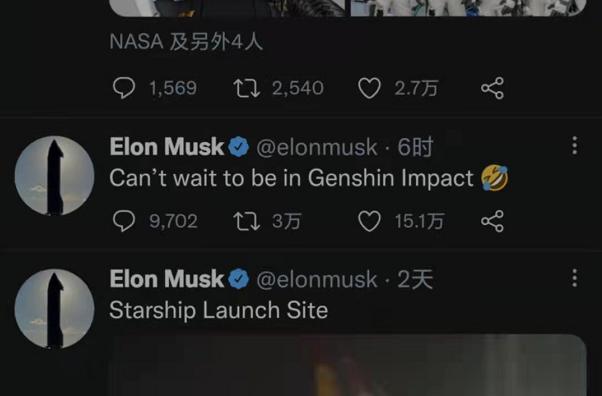 《原神》带给腾讯的另一大震撼,是《原神》取得了商业与游戏艺术的双重成功,美国与日本都是游戏艺术非常发达的国家,以在西方日本市场最为发达的二次元冒险题材正面切入并取得成功,证明了《原神》的游戏艺术达到全球顶尖水准。甚至就在10月14日,作为欧美商业与科技最知名意见领袖、老二次元爱好者的马斯克,也公开发推表达要沉迷。