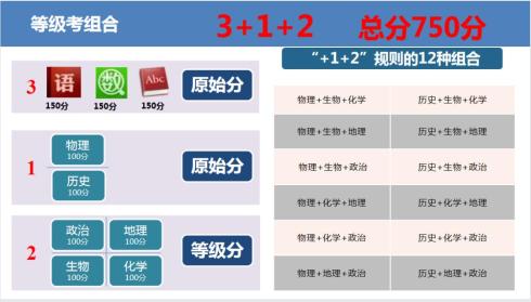 考生总成绩由3门全国统考科目成绩和3门选择性考试科目成绩组成,满分750分。其中,全国统考科目每门满分150分,选择性考试科目每门满分100分。语文、数学、外语、物理、历史科目以原始成绩计入考生总成绩;思想政治、地理、化学、生物学科目按等级转换分数计入考生总成绩。