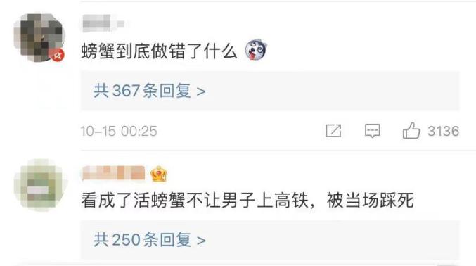 原标题:《乘客带活螃蟹上高铁被拒,当场踩死后带上车》