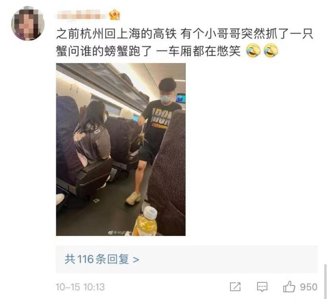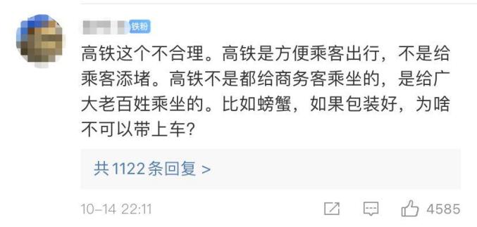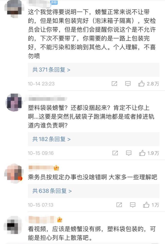 有网友对为何不能携带活螃蟹乘火车感到不解。