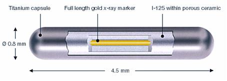 我“身高”4.5mm,“腰围”0.8 mm,肚子里装着吸附碘125粒子的银棒,外壳为0.05 mm厚的钛金属。我是“0-0-7”哦,可以24小时持续工作(释放能量)。另外我射线射程短(组织间有效射程直径只有1.7cm),大部分射线能量均被瘤体及组织所吸收,所以大家不用害怕我,无须特殊防护。