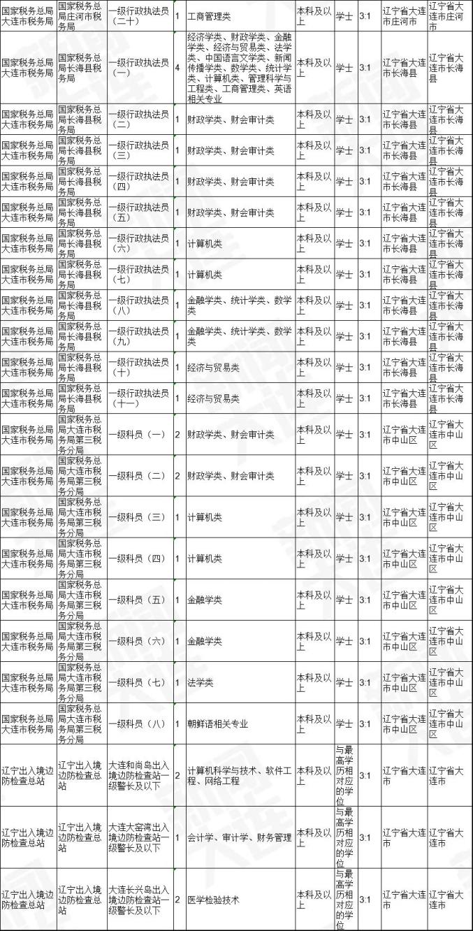 A:国税部门!本次国考涉连岗位中,“国家税务总局大连市税务局”部门排在招考首位,岗位有185个,招考人数260人。