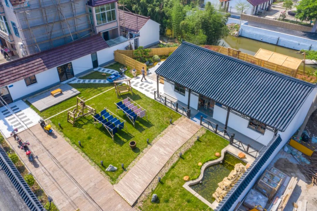 新南村还有什么好玩的地方呢?今年,一家名为新南俚舍的乡村美学工坊出现在村里。创客沈烽在镇上已经有家客栈了,他打算在新南村做点“不一样的”,“乡村振兴需要文化的助力。”因此,新南俚舍里,涵盖了艺术家工坊、艺术家茶吧、艺术家餐厅、艺术家民宿、微美术馆等功能空间,这样的综合体文化空间让人直呼“好玩”。