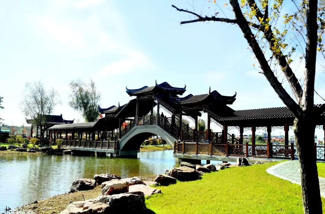 秋日,沿着海龙湖一路前行,墨绿色的树叶泛黄凋落,三三两两飘落在路面上,古风古韵随处入眼,更有一番如在画中行的意境。