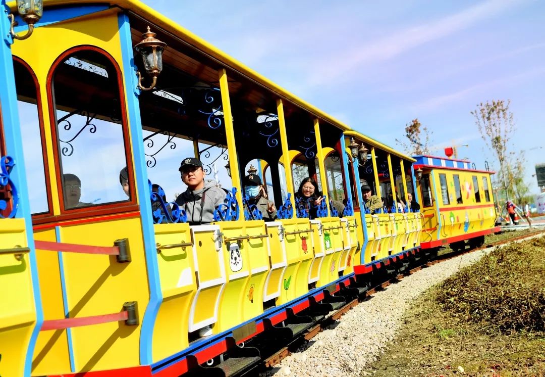 悠闲地漫步花海中,看繁花似锦,累了就坐在路边的休闲座椅上小憩,或在编藤城堡里发呆。还可坐上观光电瓶车,或观光小火车,伴随着清脆的汽笛声,环湖一周,看尽景区美景。
