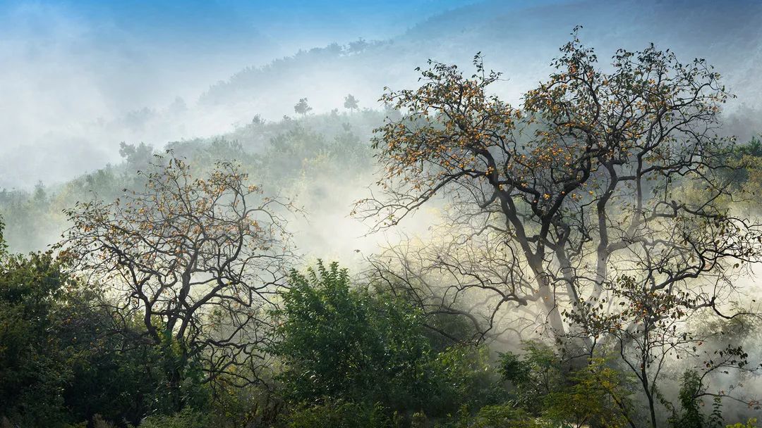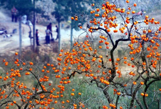 层林尽染的斑斓秋色里,柿子是最鲜活明亮的一景。一颗颗熟透的柿子挂在树梢,暖阳下分外澄澈饱满,像是一只只暖红的小灯笼,在秋风中,摇摇欲坠。