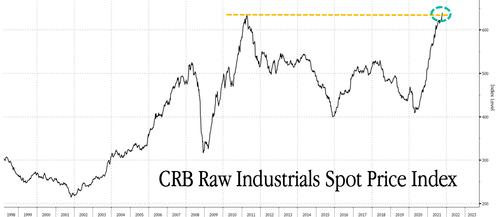 铜、铝、锌作为最重要的工业金属,价格以突破性的速度飙升,正在给下游制造商带来压力。周三,CRB BLS美国原材料工业品现货指数飙升至历史新高,反映了皮革、牛油和金属废料等原材料价格也在飙升。