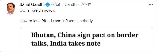 印度国大党前主席、尼赫鲁-甘地家族成员拉胡尔·甘地(Rahul Gandhi)将中不两国在边界问题上取得进展归结为印度的外交失败。
