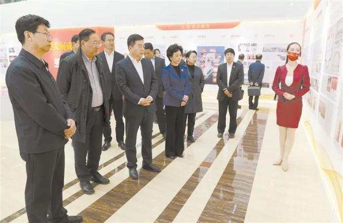 10月16日,市委书记党晓龙到河北大学调研并看望慰问广大师生。这是党晓龙参观河北大学发展成果展。保定日报记者 高欣悦 摄
