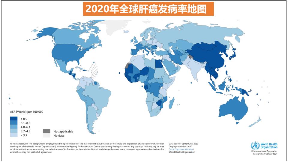 确实,如果大家仔细看世界卫生组织的全球肝癌发病率地图,会发现酷爱喝酒,而且是喝烈酒的俄罗斯人,肝癌发病率却不高,比中国低了好多级。