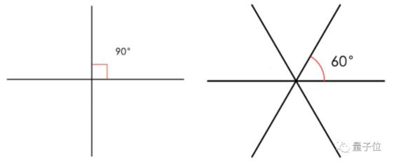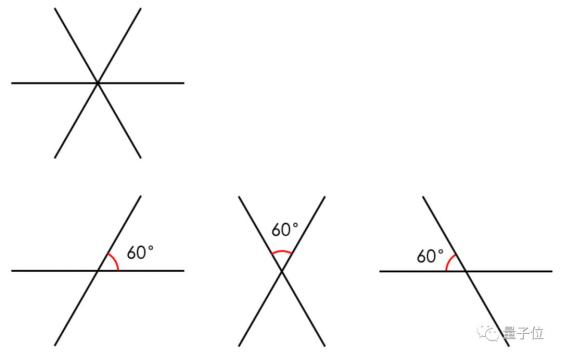 3条直线形成的6个60度夹角,也刚好把一个二维空间分成6部分,合起来就是360度。